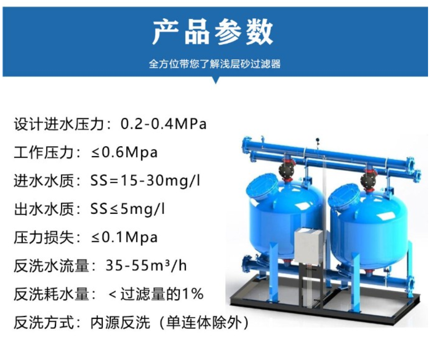反洗系統有手動,半自動和全自動三種方式,分別可通過手動按鈕、內部時鐘、PLC、壓力差或者管理系統進行啟動。反洗時間長短可調, 出廠時設定為3分鐘。系統內部有一個計時器,通過這個計時器可以為特定的工藝情況設定適合的反洗時間。通過設計特別的控制器, 可以實現集中或遠程等高要求的控制。 可以有不同的安裝方式。可以作為獨立的過濾系統,利用現有工藝中的供水泵,當然,如果是作為旁濾,也可以單獨配備它自己的泵。 也可以多個處理單元安裝在公用管道上,這樣可以實現此系統過濾能力。所有過濾介質都是經過精心挑選,洗滌,干燥,過濾精度可以達到0.45微米。均質高性能的濾料配合特別設計的過濾器上下布水, 確保在高流速下也可以達到非常好的過濾效果。 整體系統,出廠前所有的內部管道,控制連鎖線都以完備,安裝系統只需要連接外圍的管道和供電即可,安裝方便。
